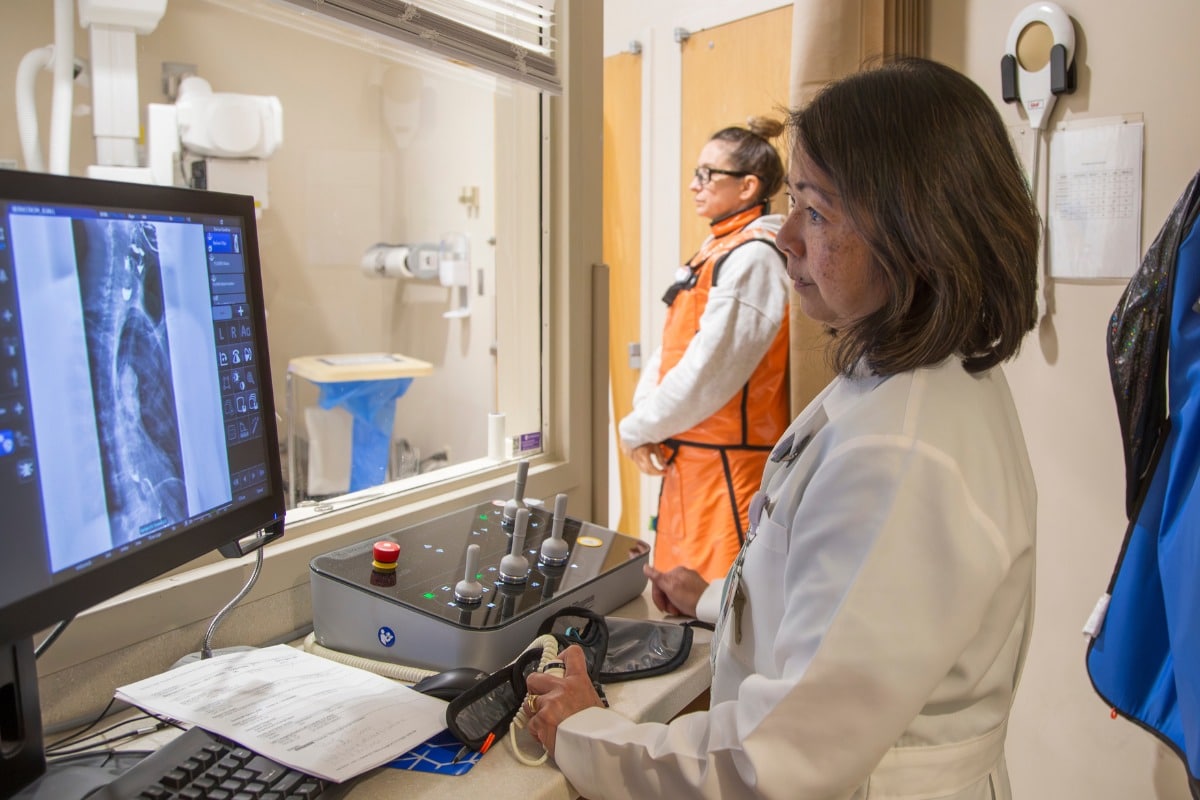 Fluoroscopy is a kind of X-ray imaging that moves in real time, like a movie. It’s a technique that helps our radiologists see the anatomical structure of the body in motion, unlike traditional static X-ray images. MCR is dedicated to using this advanced imagining modality to guide minimally invasive procedures, plant devices and diagnose conditions throughout the body.